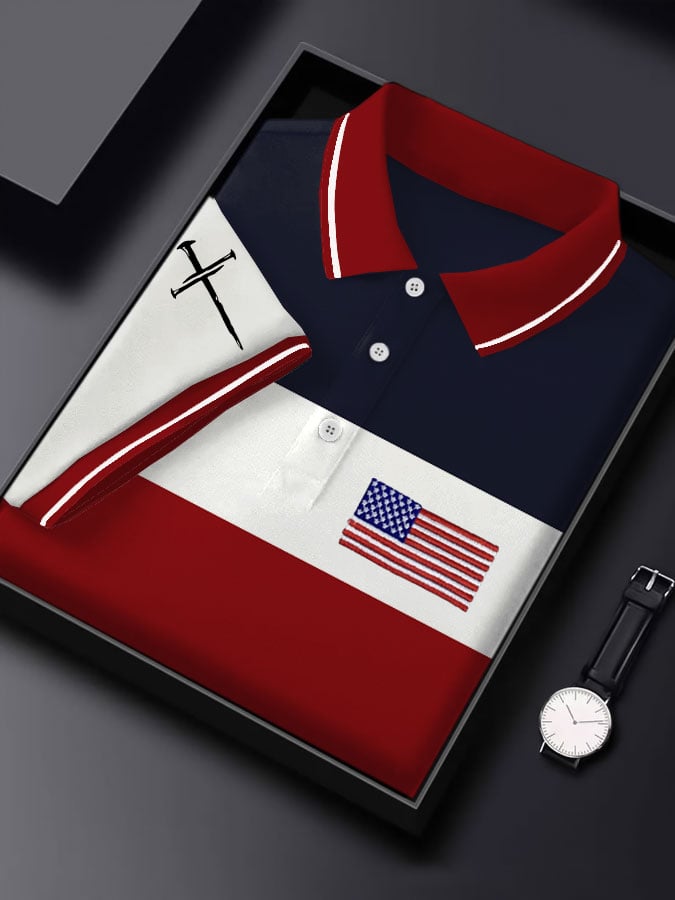 Men's American Flag Independence Day Print Casual POLO Shirt
